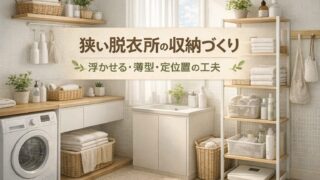 狭い脱衣所を使いやすく整えたい方に向けて、浮かせる収納・薄型収納・定位置づくりの考え方をわかりやすく解説します。床置きを減らし、動きやすく戻しやすい脱衣所に整えるコツをまとめました。